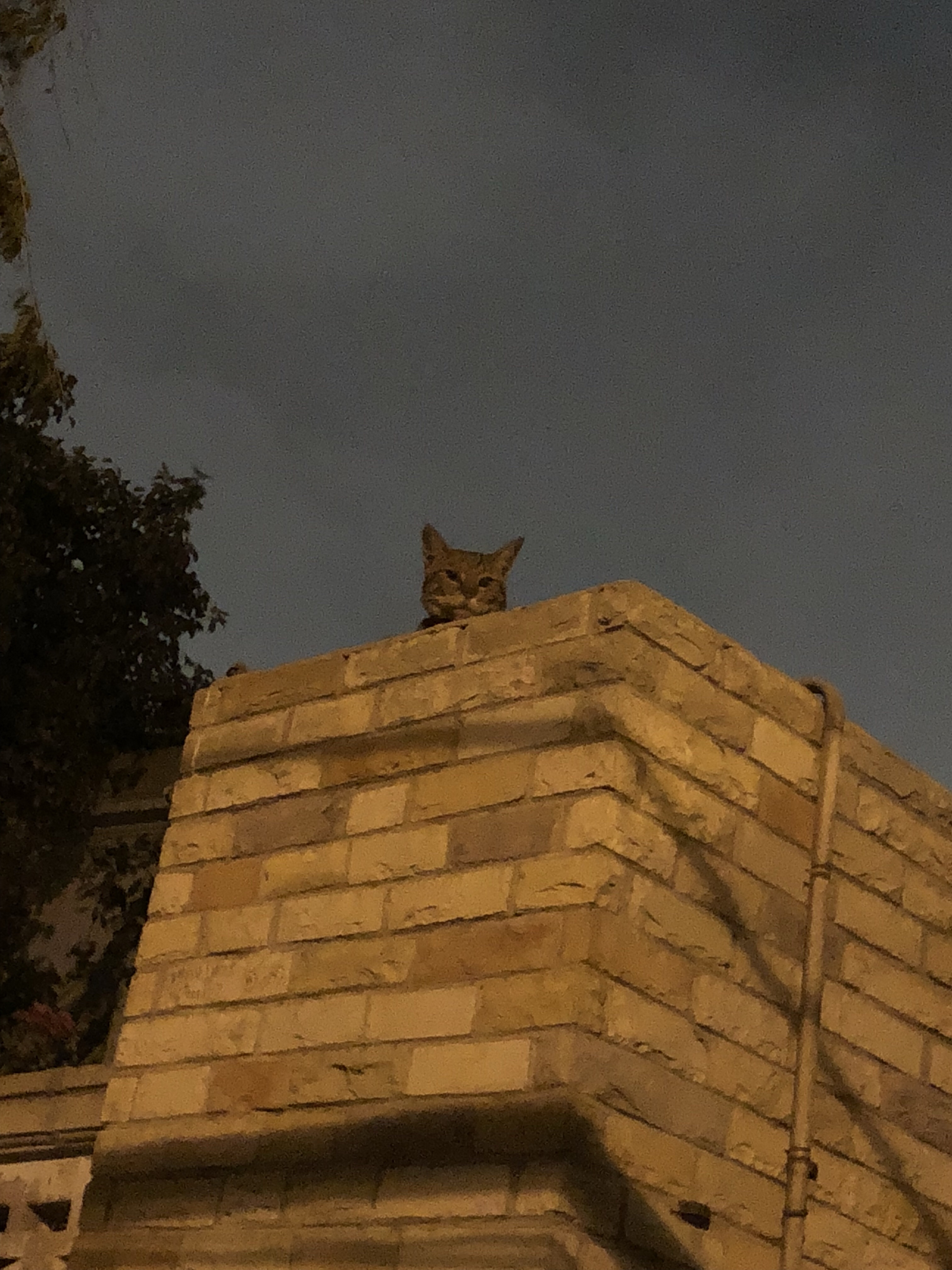 Upon my arrival after sunset, as soon as my car reached at the main gate of the house- I saw a glimpse of “ears” popping up in the sky. Upon keeping my focus on the ears, I suddenly got to see Tiger’s head and there he was spotted sitting in his usual pose.