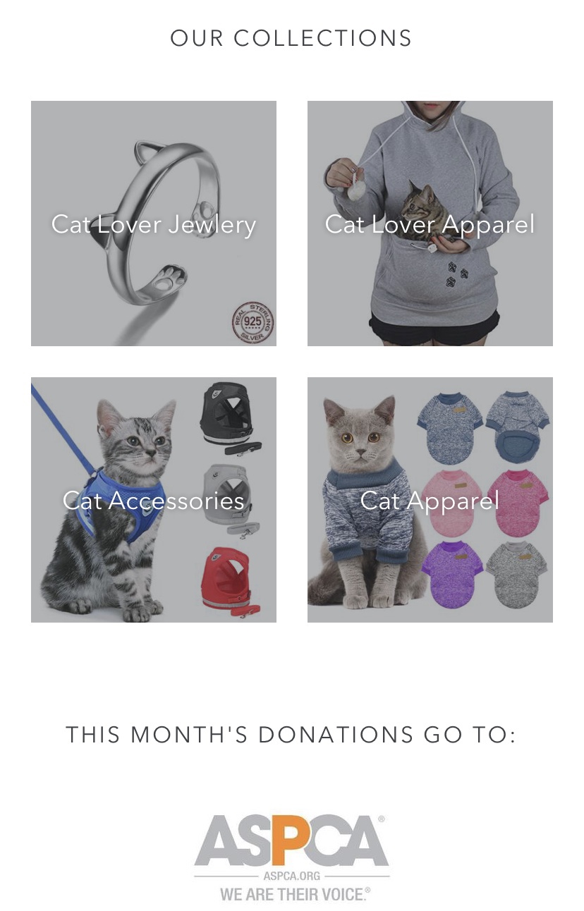 The best thing about this online store is that the amount earned shall be donated to ASPCA who are helping in rescuing Cats from their miseries.