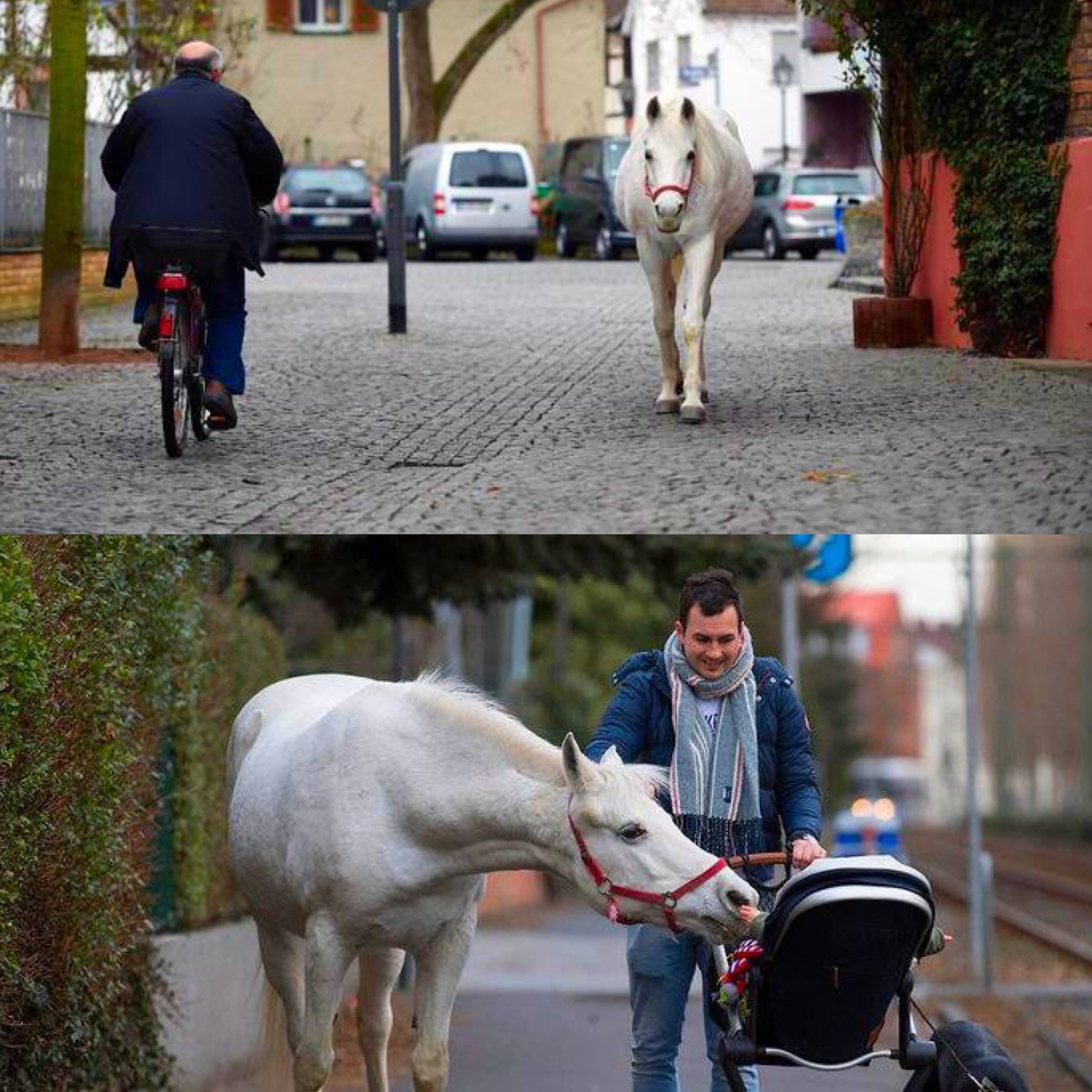 Today, I am going to share a beautiful story of ‘Jenny’, a horse who actually goes on a long walk every morning all by herself in Frankfurt, Germany. Yup, that’s right. She has been taking the same route every morning for about 14 long years, ever since her owner, now 79 years old, became unable to ride. She is a beautiful, friendly horsey who enjoys greeting all of the familiar faces along the way, and she stops, gets treats and pettings from some of her favourite humans. The locals treat her like a celebrity and happily clean up after her.