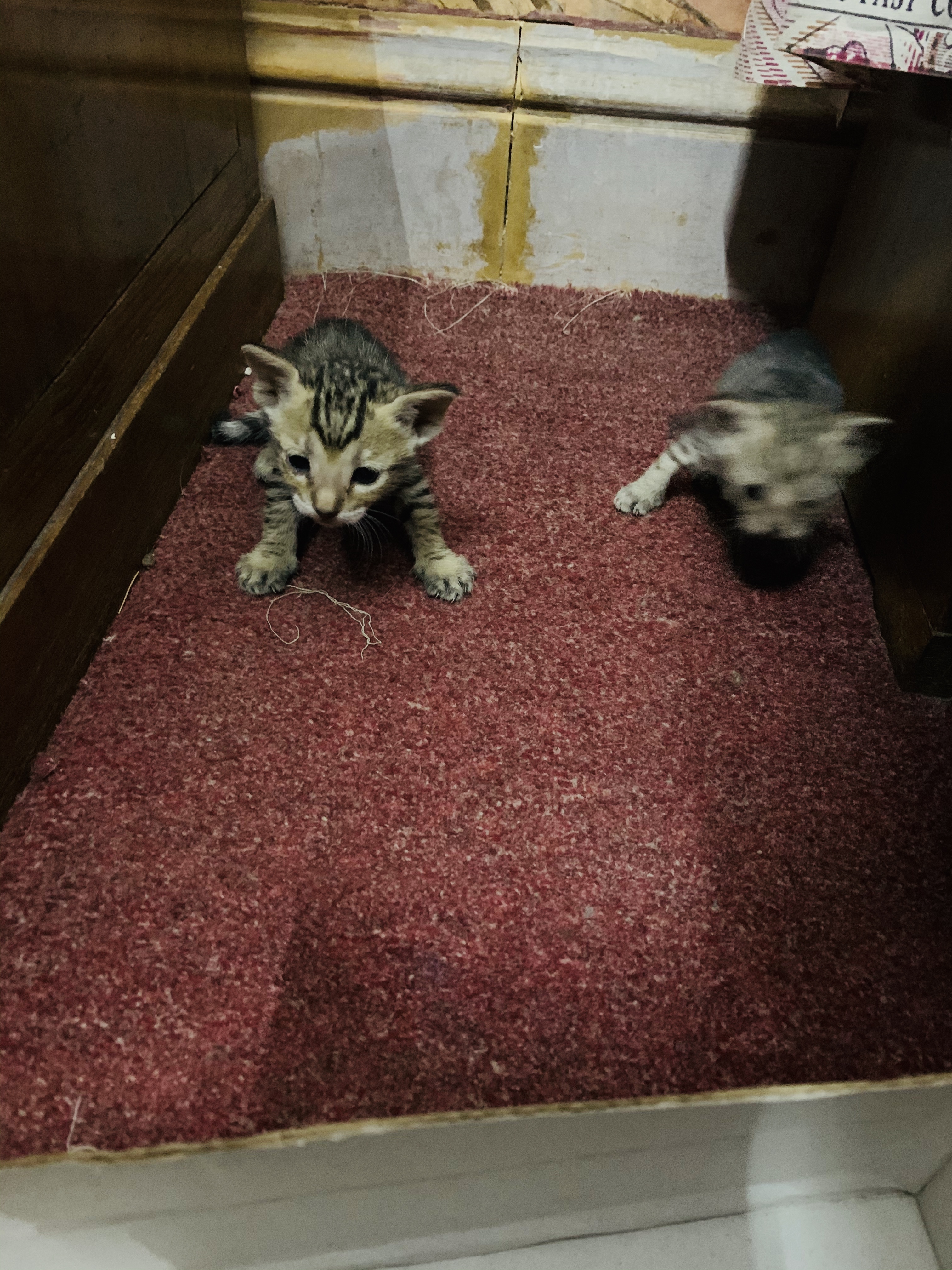 Tiny the rescued cat kittens are up and about. They say it takes about 10 weeks for the kittens to understand and communicate through the visions they see.