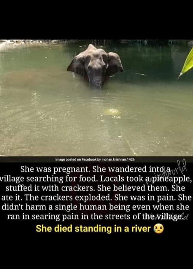Woke up to a drastic news, a news which literally broke me from the inside, made me lose my morale and the urge of going through the day went all in vain, when I got to know that a pregnant 15 year old Elephant died.