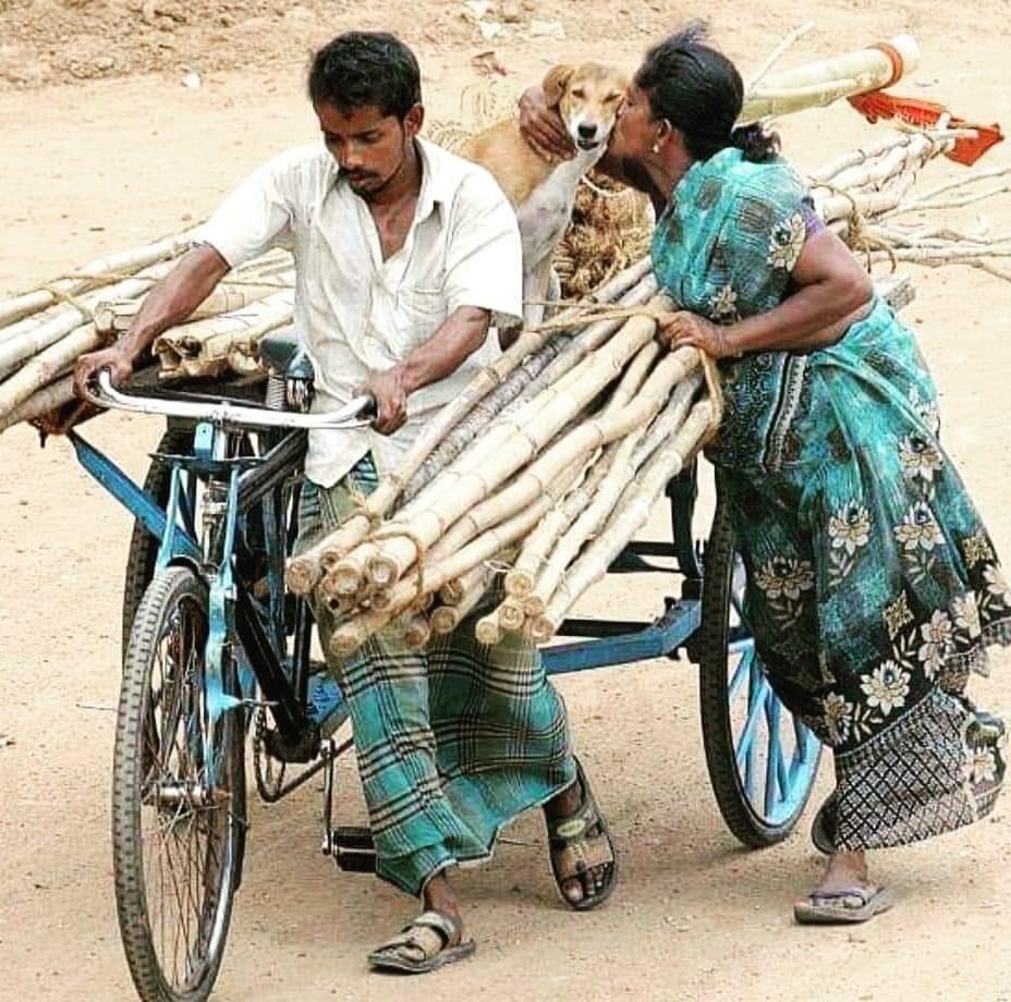 It clearly shows that how poor they are, but the way they are giving a ride to this little dog and the love the lady is showering on the dog is enough for us to give them respect and blessings. In a world like now, where people are dieing out of hunger and pandemic, there are such people too who feel the pain of hungry and abandoned animals.