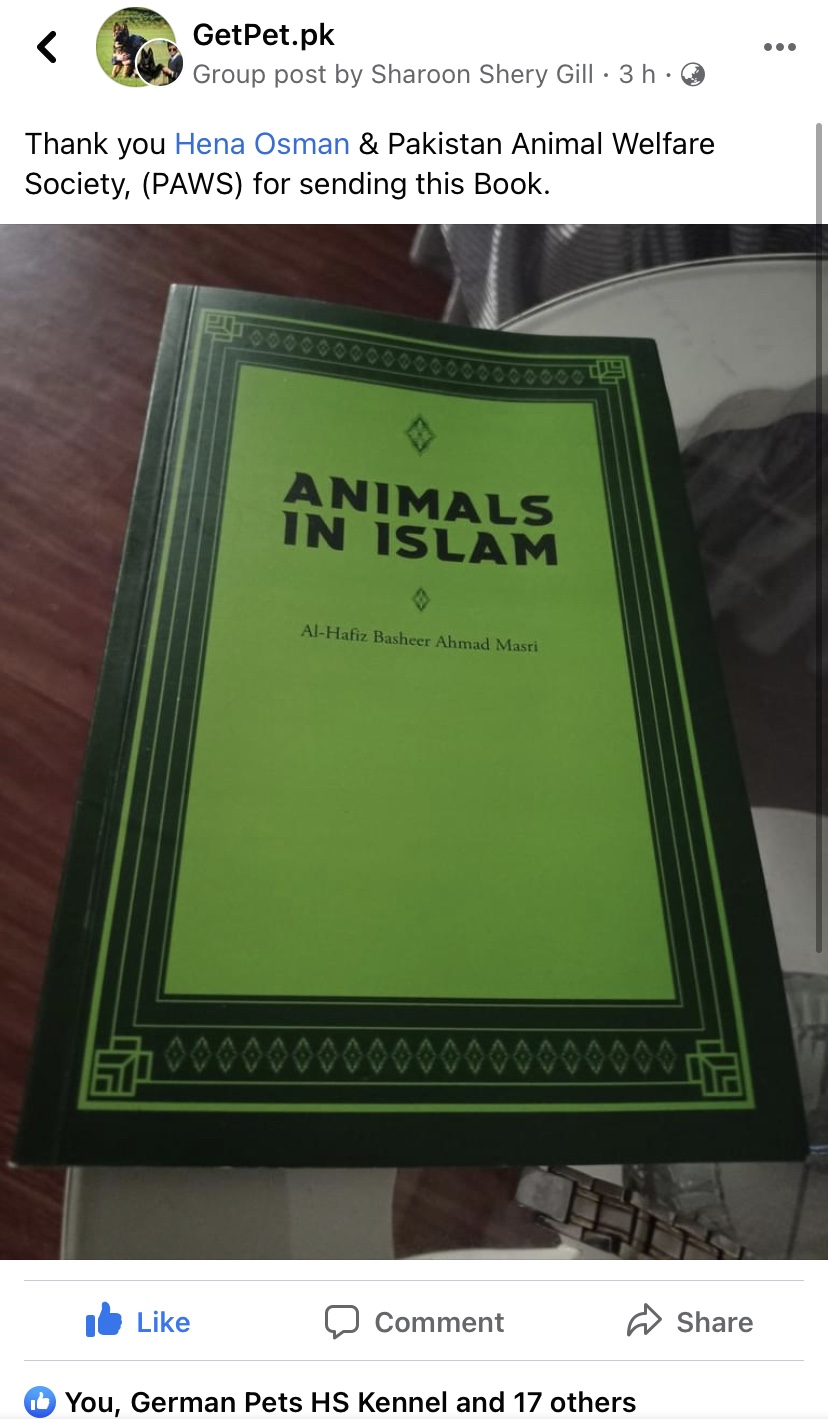 I am so delighted to share that Pakistan Animal Welfare Society had worked together with the scholars and complied an informative book “Animals In Islam”.