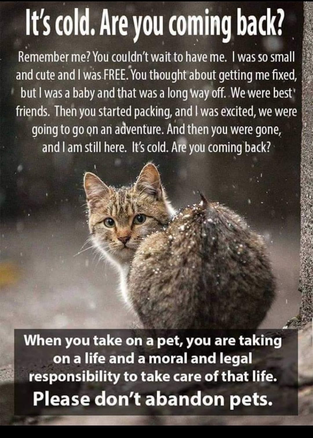 Don’t forget that it’s that time of the year where you cannot leave your pets unattended outside your house. So please, if you think you cannot handle the responsibility that comes with Pets then please do not bother to have one.