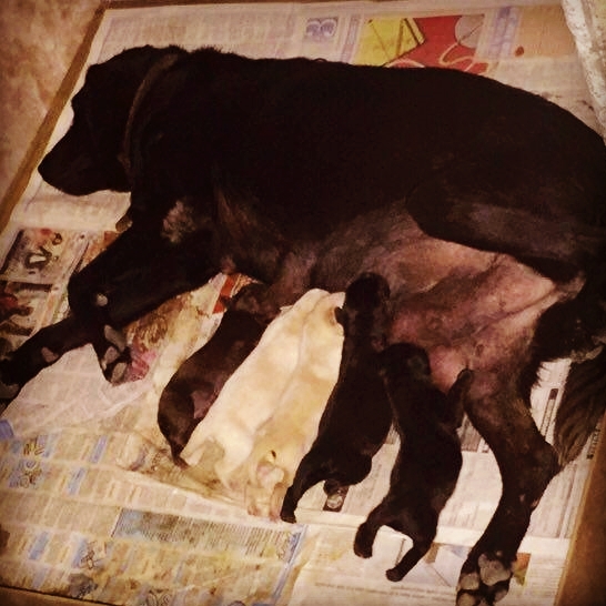 This is my Kate the Black Labrador who had previously given 5 beautiful cute little puppies and now they are happily living with their new owner.