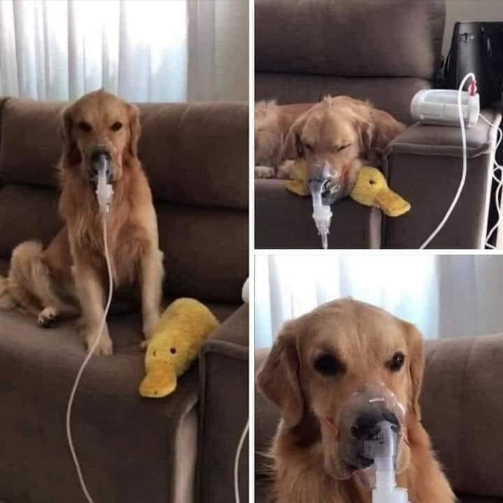 He is asthmatic and is under treatment by his new owners. This dog is so patient and quiet while he gets his oxygen, because he knows this is for his own good. The new owners are very concerned about his health and are present every time whenever he needs his oxygen as he gets an attack as they have to nebulize him.