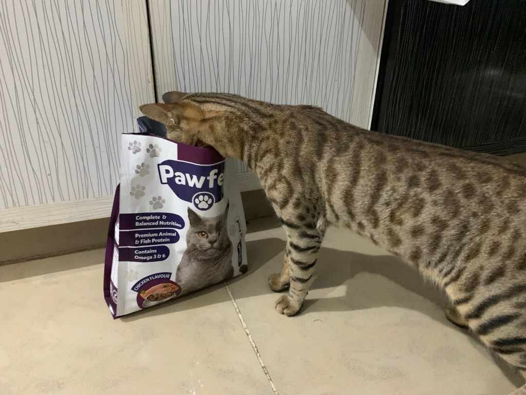 Cats have this unique sense of smell, the aroma of the Pawfect Cat food took Nutty on a roller coaster ride as he went nuts and crazy just as I started cutting the wrapper, the aroma was it all that needed Nutty to react the way as in the picture below.