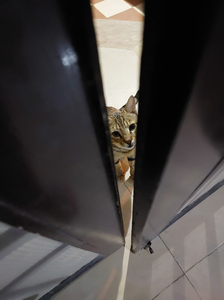 This is my little Nutty who is not so little anymore (touch wood). He mostly sits here, right at the front of the main door and watches his humans inside from the net, which probably makes him wonder that why are we caged? Sometimes, these animals also talk to themselves and I am sure they do wonder about how it feels to Humans, if they are kept inside a closed enclosure or a cage. Ofcourse, anyone who is kept in room locked under key, it would be very bizarre and traumatizing, and I believe now after facing severe Covid Lockdown, we all have dealt with it and know how it really feels, yet we are still adamant in making others specially animals life in misery!
