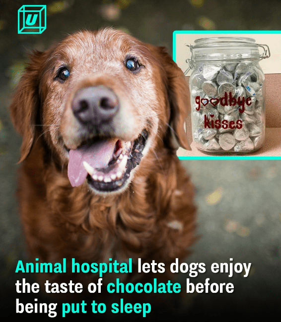 An animal hospital in Alabama has a ‘goodbye kisses’ chocolate jar for dogs to enjoy chocolate before being put down. Smiths Station Animal Hospital posted a picture on their Facebook page showing a glass jar full of Hershey’s Kisses.