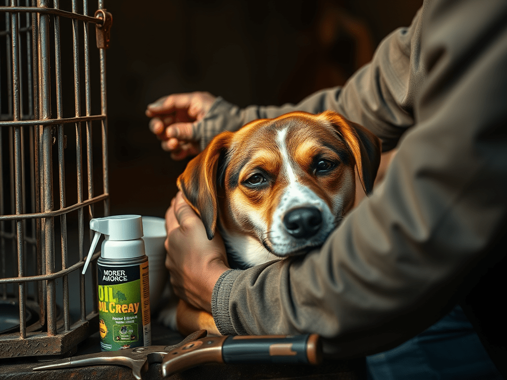 - Assess the situation: Evaluate the cage and the dog’s position to determine the best course of action.
