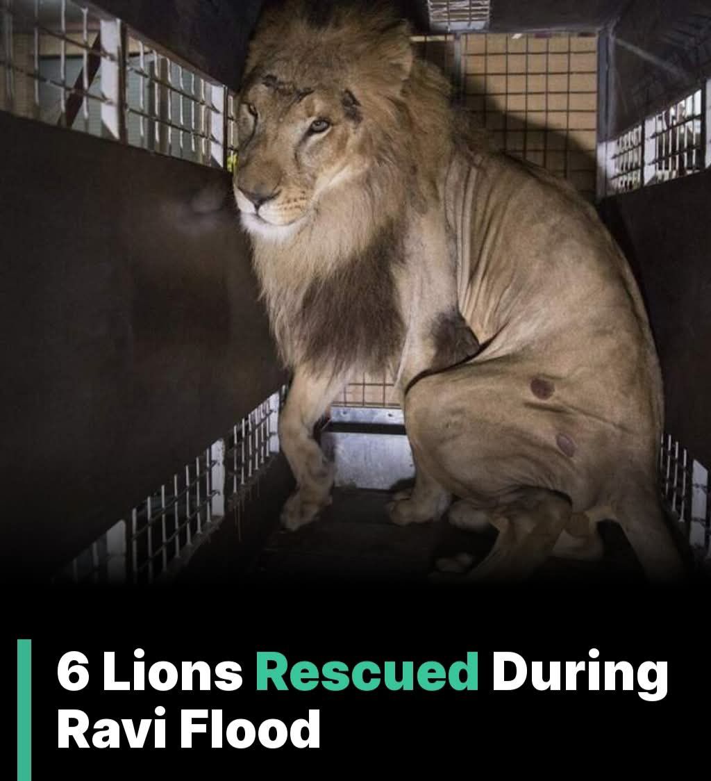 Six lions were trapped in rising waters during the recent flooding along the Ravi River. Wildlife officials and local volunteers coordinated their efforts to rescue them successfully. The sudden surge in floodwater had endangered both human and animal lives, forcing emergency teams to act swiftly.