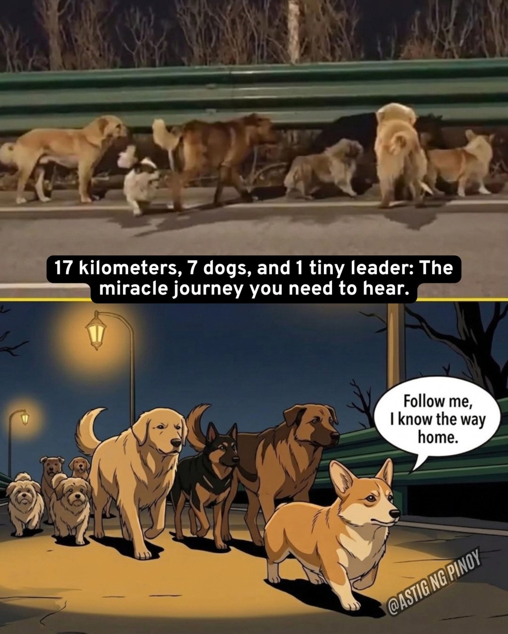 Instead of scattering, the seven dogs stayed together. What followed was a remarkable journey—17 kilometers across unfamiliar terrain, over the course of two exhausting days. It wasn’t just a physical test of endurance, but a testament to something far deeper: connection, trust, and unwavering loyalty.